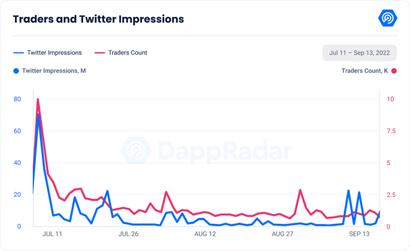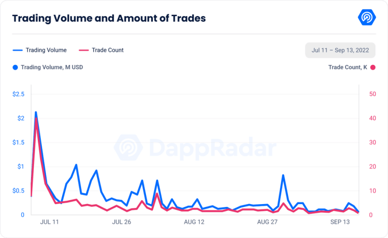 De hecho, el volumen de negociación del mercado NFT se desplomó un 85 % en agosto, en comparación con su pico de 5700 millones de dólares en enero.